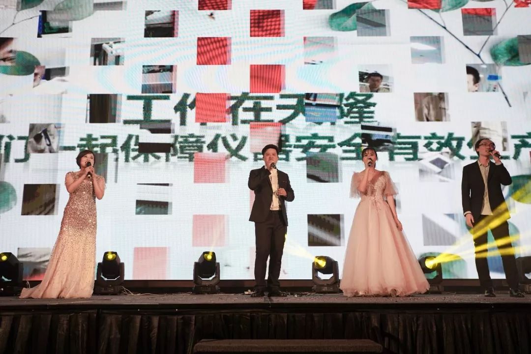 蘇州天隆精彩絕倫的晚會(huì)表演也不容錯(cuò)過(guò),晚會(huì)開始之前,無(wú)錫銳奇董事長(zhǎng)朱國(guó)強(qiáng)先生和蘇州天隆副總經(jīng)理江志強(qiáng)先生致祝酒辭:感謝各位同事2019年的辛勤付出,我們舉杯同慶;2020年我們?cè)俳釉賲枺回?fù)韶華,一起努力加油!