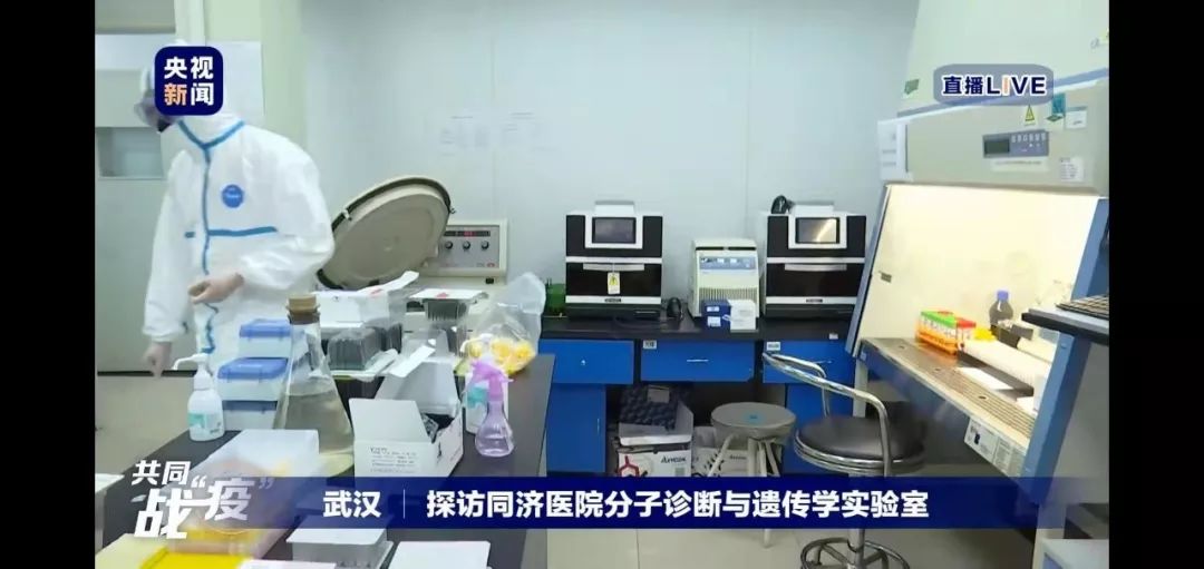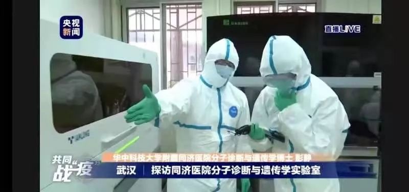 央視新聞拍攝天隆試劑儀器在武漢同濟醫院的使用情況。