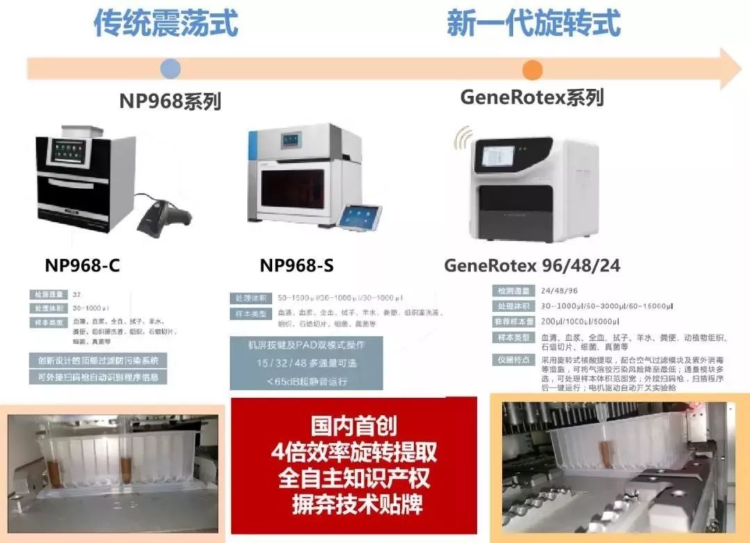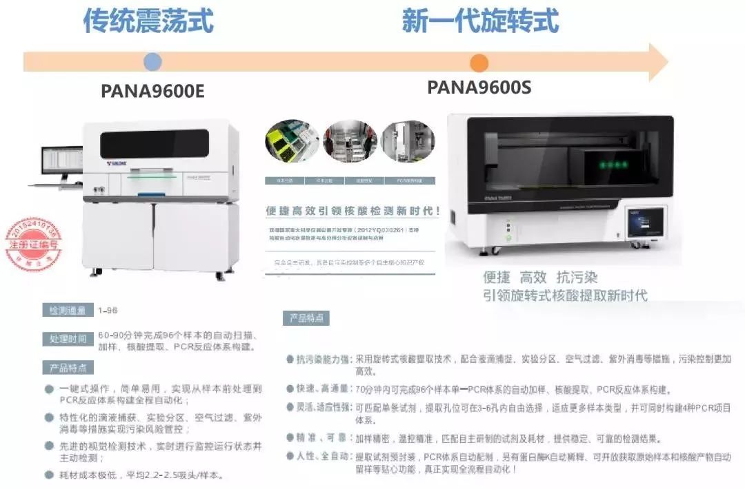 將滅活病毒后的樣本進行核酸提取,產物用于后續檢測。可采用手工法,也可采用大通量的自動化設備,如天隆NP968-C核酸提取儀、PANA9600E及PANA9600S全自動化核酸檢測工作站等,更能降低操作人員被感染風險。