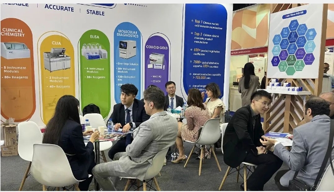 此次展會(huì),天隆科技攜手科華生物及焦點(diǎn)生物聯(lián)合參展,展出包含生化診斷、免疫診斷、分子診斷等在內(nèi)的體外診斷(IVD)整體解決方案。展會(huì)現(xiàn)場(chǎng),多元化的產(chǎn)品矩陣,更完善的解決方案聚焦全場(chǎng)目光,吸引眾多專業(yè)人士駐足交流。